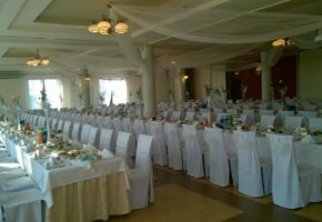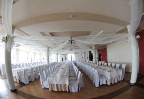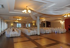 Piękna, klimatyzowana sala weselna 470 m2 z wyjściem na duży taras, letni ogródek restauracyjny oraz plac zabaw dla dzieci zapewni z pewnością wspaniałą atmosferę.